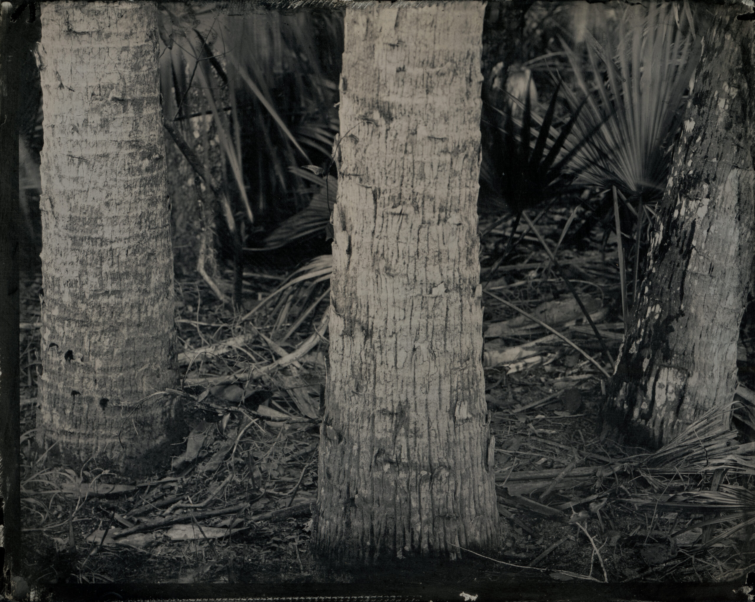 Three Palms Along the Tomoka River. Aluminum, 4×5. 2024.